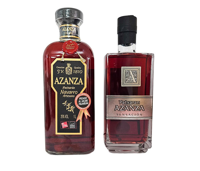 Caja de 6 botellas.- 3 Botellas de Pacharan Azanza Sensación 25º de 0,70 litros- 3 Botellas de Pacharan Azanza JV 1810 25º de 1 litro